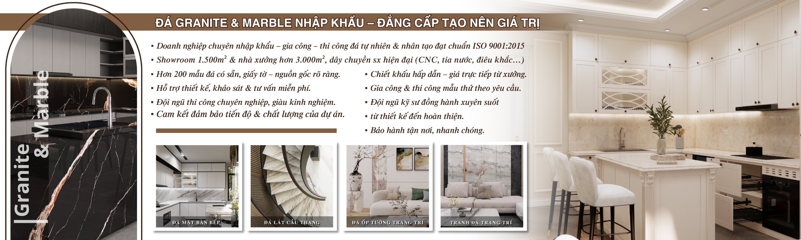 Là đơn vị nhập khẩu, phân phối và thi công đá hoa cương tự nhiên – nhân tạo uy tín, cung cấp giải pháp vật liệu toàn diện cho các dự án quy mô lớn tại TP.HCM và khu vực phía Nam.