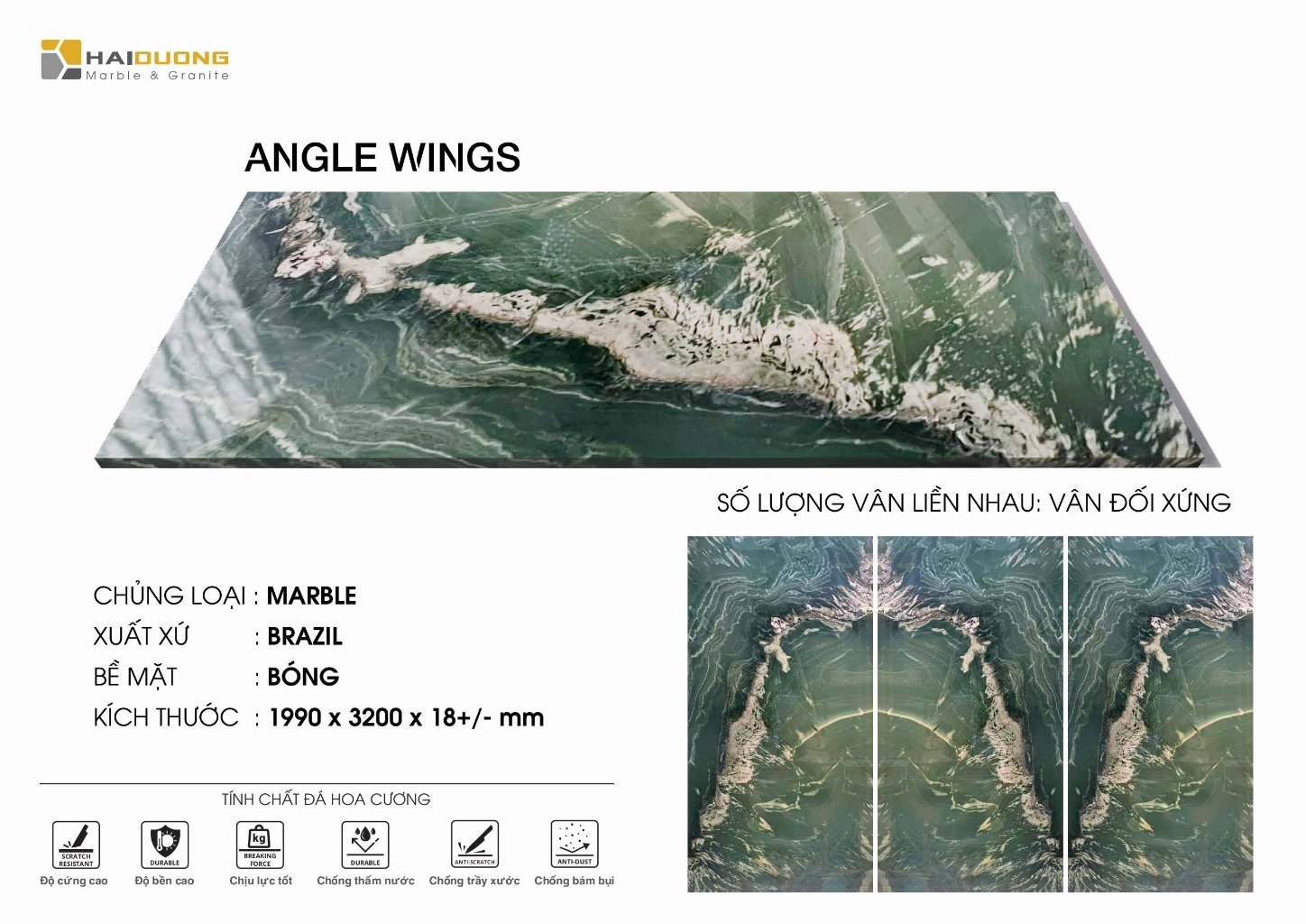 - Đá có màu sắc đa dạng, thường là sự kết hợp của màu xanh, trắng, xám, nâu hoặc vàng, với các vân hoa văn mềm mại, tự nhiên, tạo cảm giác như những đôi cánh.