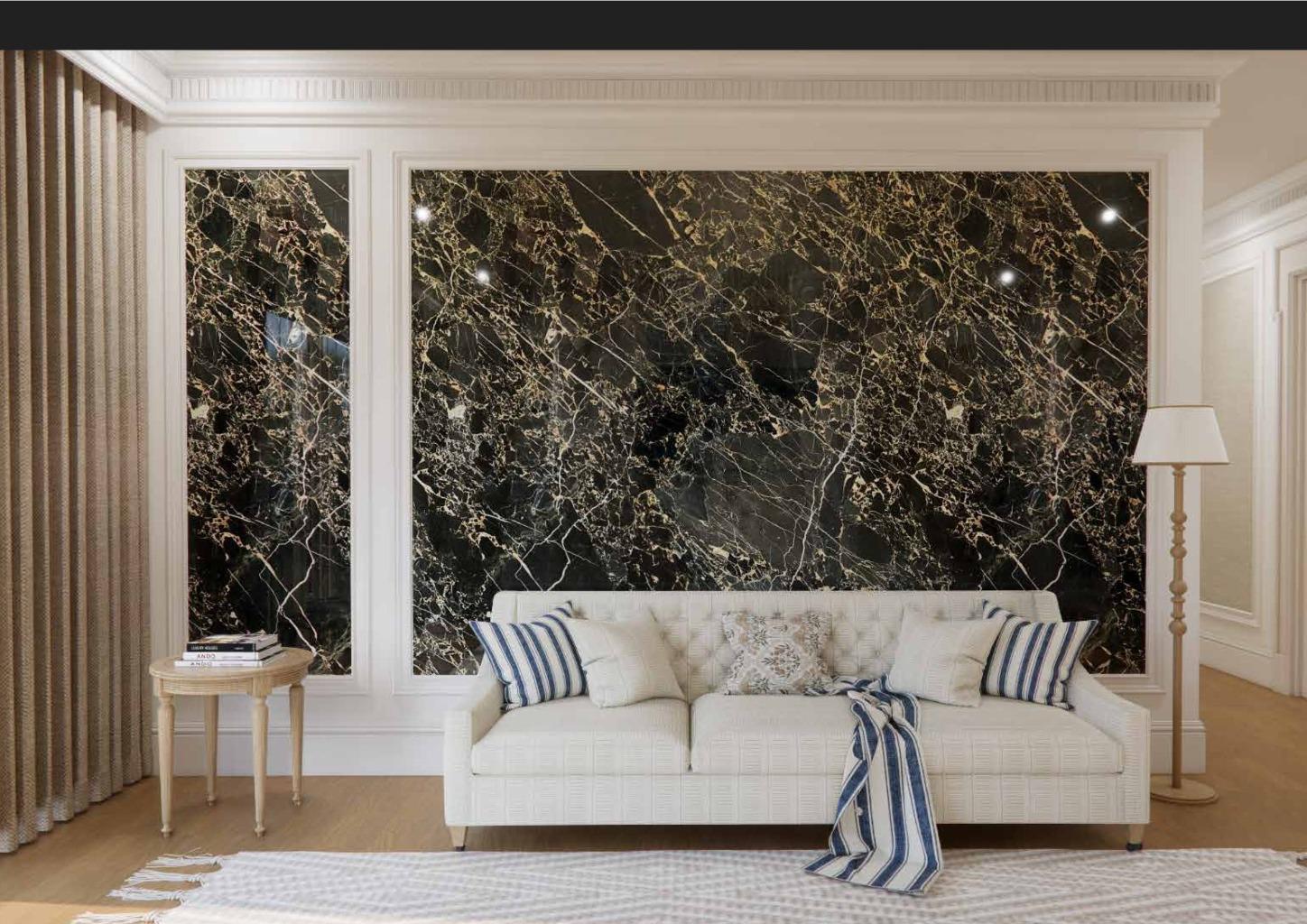 - Tông màu chủ đạo là đen tuyền huyền bí, điểm xuyến những đường vân đỏ và vàng kim lấp lánh như những viên kim cương quý giá, tạo nên vẻ đẹp sang trọng, đẳng cấp, độc đáo và đầy ấn tượng cho không gian.