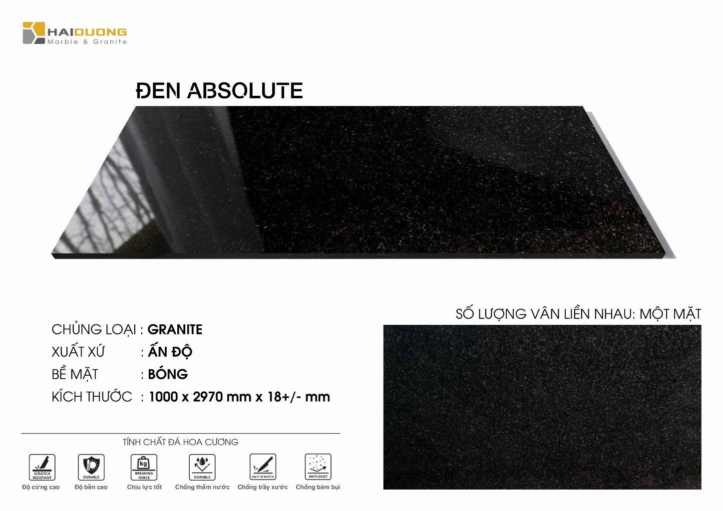 - Đen tuyền, không có đường vân điểm nhẹ chấm nhỏ mịn, tạo nên vẻ đẹp sang trọng, đẳng cấp và huyền bí.