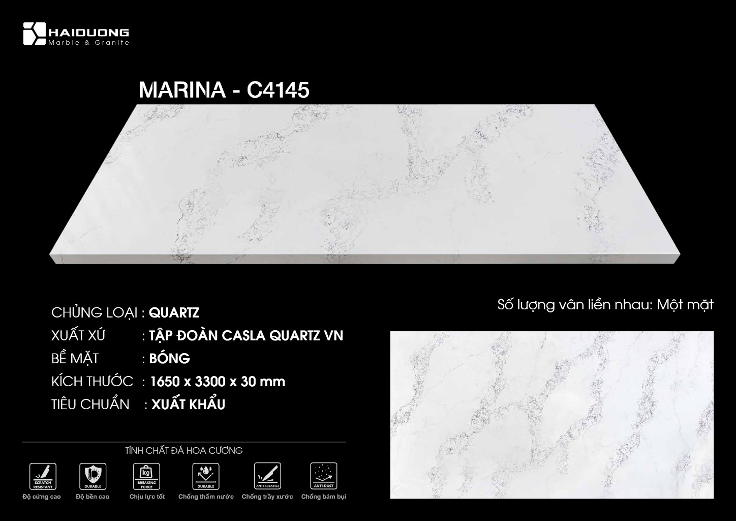 ĐÁ THẠCH ANH MARINA – BẢO HÀNH 18 NĂM – THƯƠNG HIỆU CASLA QUARTZ – VẺ ĐẸP TINH KHÔI TỪ DÒNG SÔNG BĂNG