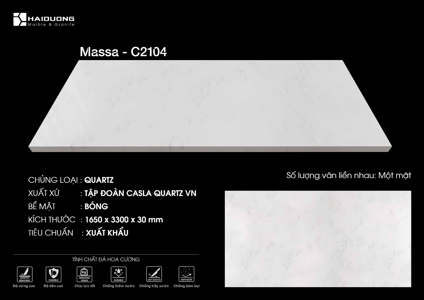 ĐÁ THẠCH ANH MASSA – BẢO HÀNH 18 NĂM – THƯƠNG HIỆU CASLA QUARTZ – SỰ TINH TẾ TRONG TỪNG ĐƯỜNG VÂN NHẸ NHÀNG