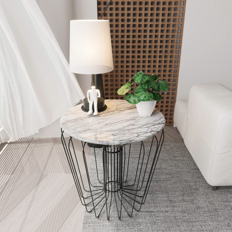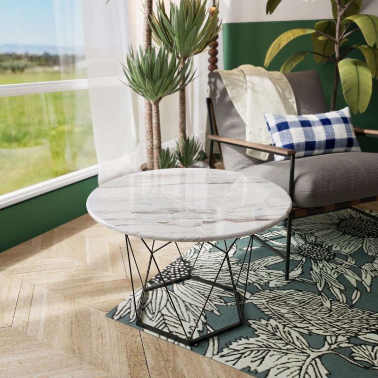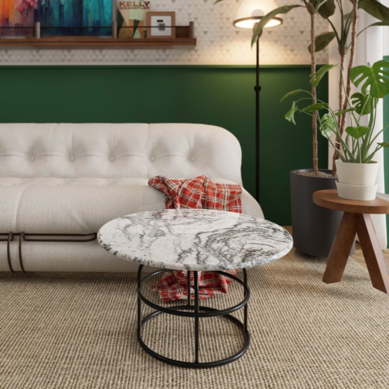 Một mẹo nhỏ để trang trí bàn trà mặt đá hài hòa với không gian phòng chính là kết hợp màu sắc với các nội thất khác trong căn nhà của bạn: