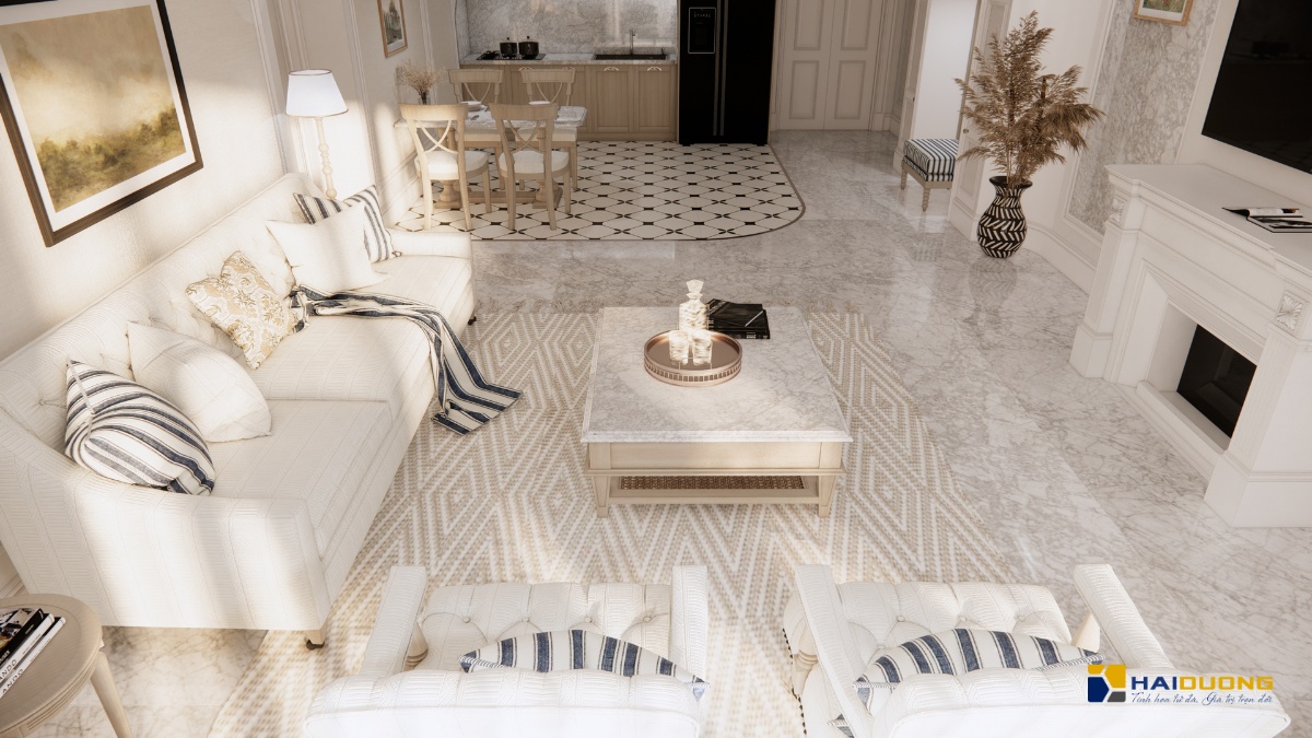 Đá Marble Carrara được ứng dụng rộng rãi trong các hạng mục nội thất.