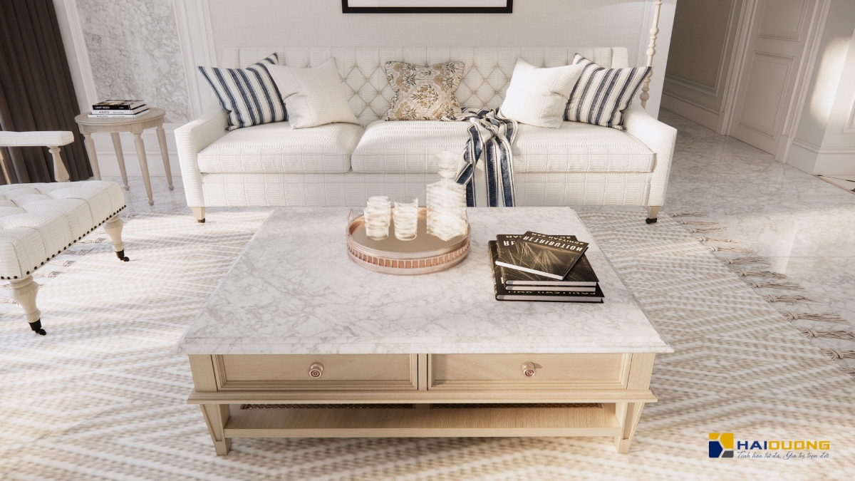 Bàn sofa bằng đá Marble Carrara sang trọng.