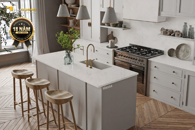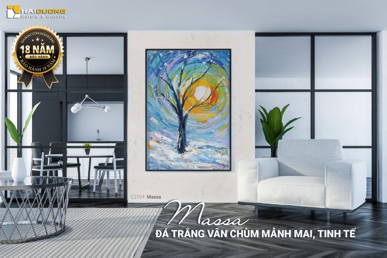 Massa sở hữu tone trắng ngà dịu mắt, không quá lạnh như trắng tuyết, cũng không nghiêng về tông ấm. Trên nền đá ấy, các vân xám nhạt trải dài nhẹ nhàng như những làn khói mỏng, kết nối tự nhiên tạo nên bố cục mạch lạc nhưng không rối mắt. Nhờ vậy, Massa phù hợp với nhiều phong cách thiết kế từ tối giản hiện đại đến Bắc Âu thanh thoát hoặc tân cổ điển nhẹ nhàng.